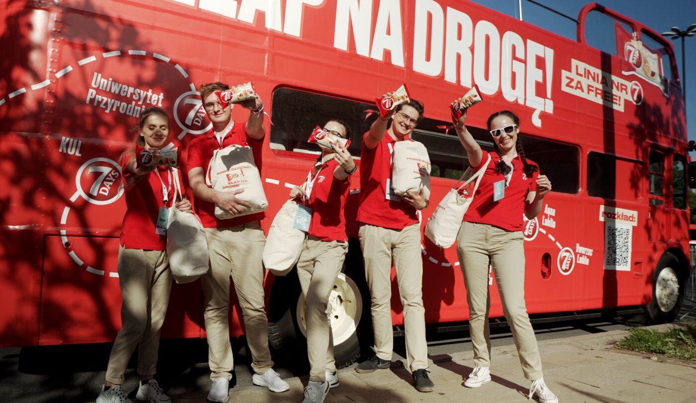 Dlatego stworzyliśmy dla nich specjalną linię autobusową! Czerwony bus nr 7 oferował darmowe przejazdy pomiędzy imprezami a uczelniami, sampling i zabawy, jak zjeżdżalnia z dachu.