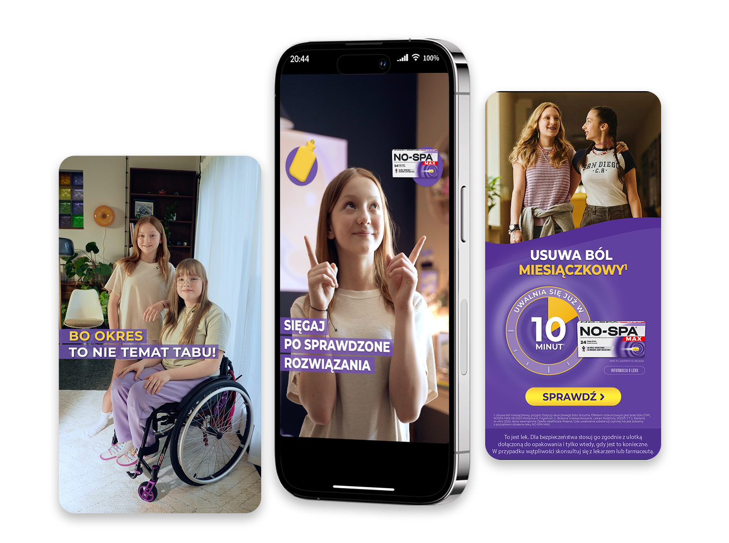 Wraz z NO-SPA chcieliśmy zmienić tabu w rozmowę i udowodnić, że bycie kobietą nie musi boleć. Strategię oparliśmy na naszych autorskich badaniach jakościowych, dzięki którym postawiliśmy na motyw siostrzeństwa, edukacji i autentycznych historii.